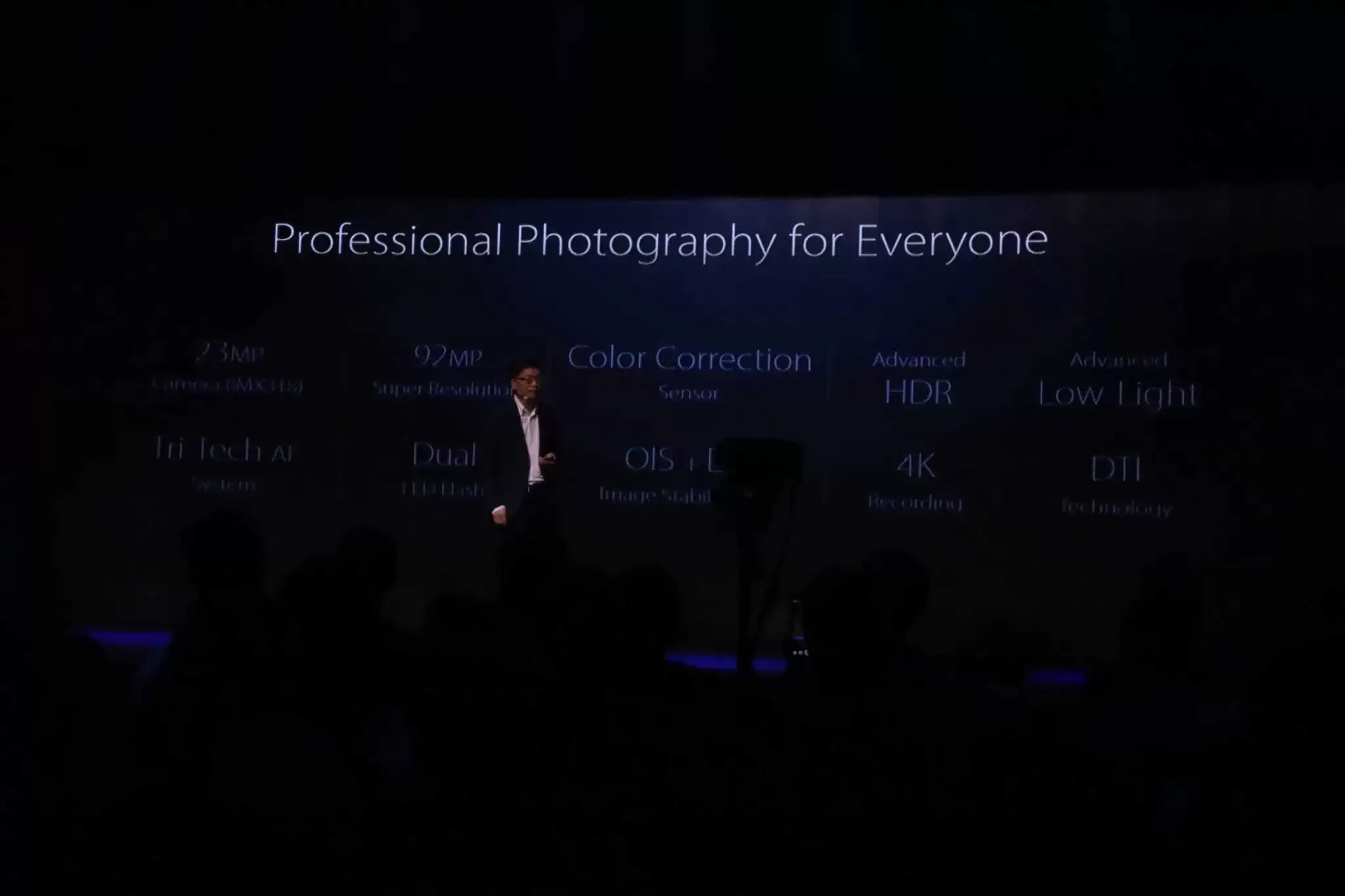 23MP rear camera f/2.0 aperture, 6 P Largan lens, 4-axis, 4 stops OIS w/ 0.03s